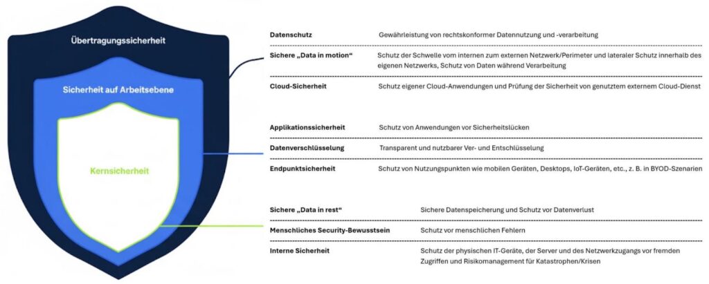 Netzwerksicherheit steht als Begriff stellvertretend für sämtliche Schutzmaßnahmen, um IT-Infrastrukturen gegen unautorisierte Zugriffe, Schäden und Verluste abzusichern. Diese Maßnahmen können technischer oder organisatorischer Natur sein und sorgen dafür, dass ein Netzwerk vertraulich, integer und verfügbar bleibt. So zählen Verschlüsselungstechnologien und Firewalls ebenso zur professionellen Netzwerksicherheit wie Sicherheits- und Passwortrichtlinien und Security-Schulungen. Um ein IT-Netzwerk umfassend zu sichern, braucht es mehrere Schutzschichten, die jeden Bereich im Netzwerk berücksichtigen. Außerdem ist es sinnvoll, Netzwerk und Sicherheit individuell aufeinander abzustimmen. Wir zeigen Ihnen, welche Security-Schichten notwendig sind und wie umfangreich Ihre IT-Security je nach Unternehmensart und Angriffsrisiken ausfallen sollte. Eine wesentliche Priorität der IT-Netzwerksicherheit besteht darin, Zugriffe zu kontrollieren und Infiltration als auch Verbreitung von Bedrohungen im Unternehmensnetzwerk, wie Hacker, Malware und Viren zu verhindern.